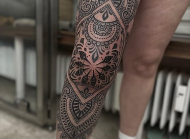 Ich tätowiere ausschließlich im Stil Blackwork, Floral, Ornamental und Geometric. Eben die Motive und Stilrichtung, die ihr auf meinen Bildern sehen könnt.